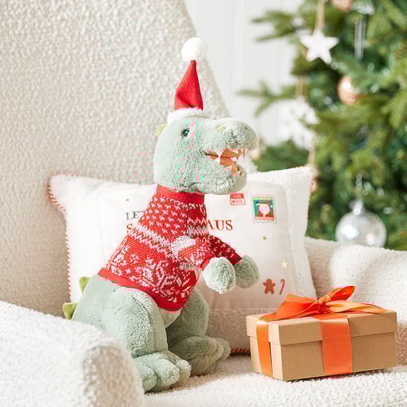Your little explorer will love these dino-mite gifts! Let them travel in style alongside their favourite prehistoric pals with our safari-themed bag set. Featuring easy-grip handles for effortless carrying, these matching bags are the perfect accessories for their first holiday, or while visiting family over the festive season. Your mini fossil hunter will never adventure alone with Dino Claus by their side! Providing comfort and reassurance, this festive friend makes for the perfect gift and companion.